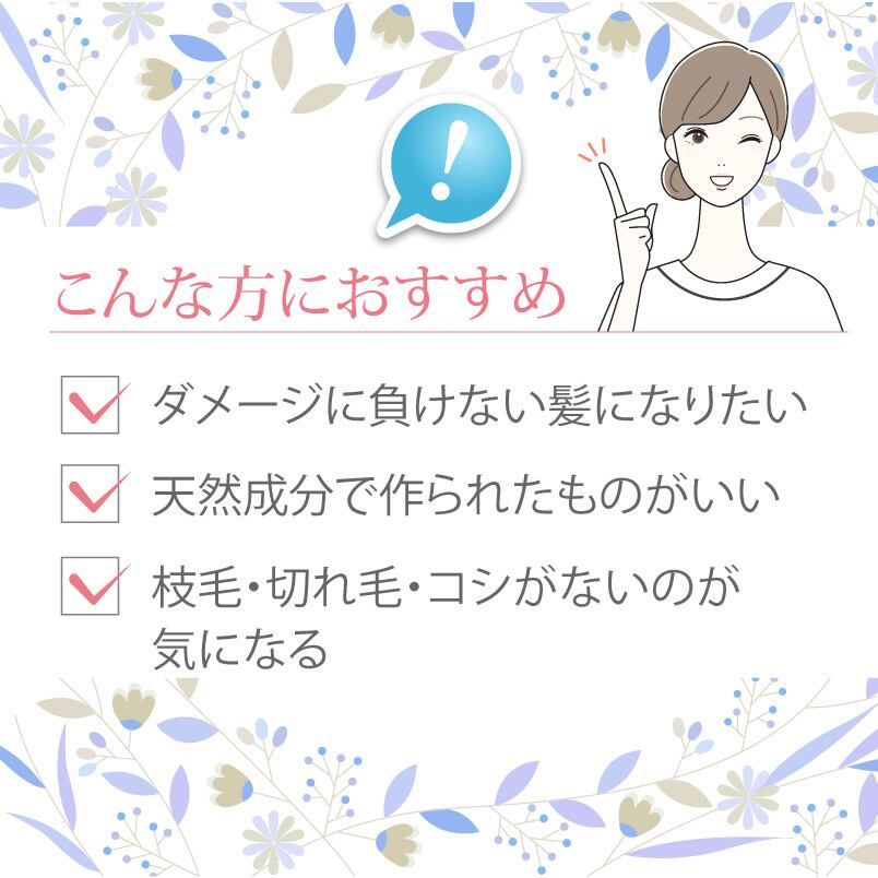 良質のタンパク質を補給するコンディショナー 良質のタンパク質を補給することで、 シャンプーのダメージに負けないベースづくりを。 髪の内部から栄養成分が流れ落ちるのを防ぎ、 枝毛・切れ毛から髪を守り、コシとハリを与えてくれます。 ※初めてご購入の場合、専用のエコボトルと一緒にご使用ください。 内容量: 1L(1回2プッシュ使用の場合:約5か月間分)