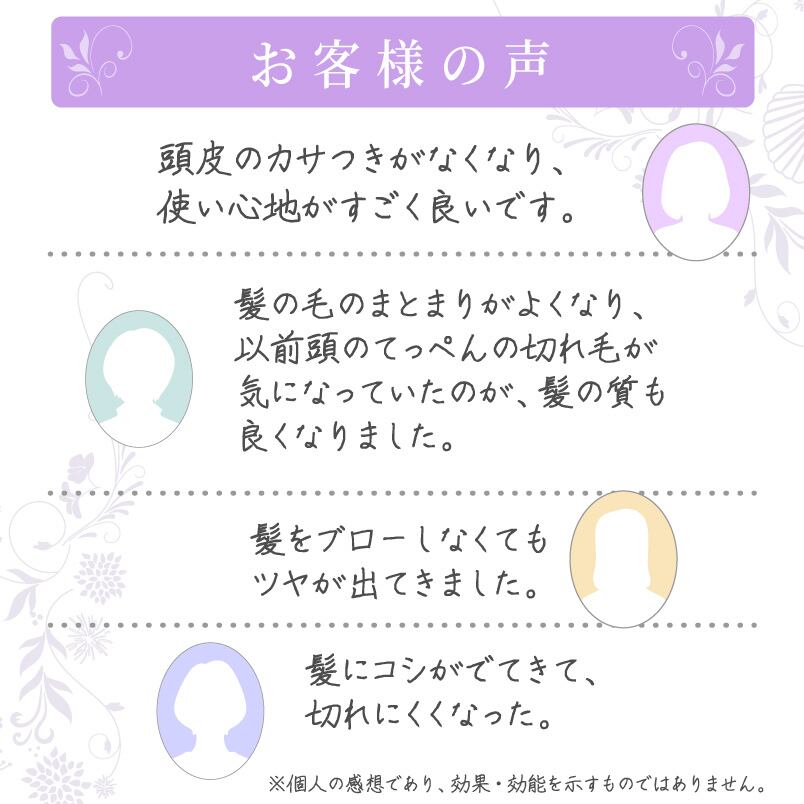 適量を手にとり、髪全体になじませ、すすいでください。 ※真空加工のため、詰替え用を専用エコボトルにセットする際は本体を切らないようご注意ください。