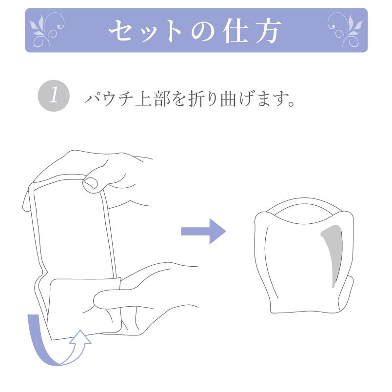 1.ボトルを開け、パウチ下部の線の部分を折り曲げ、ボトル本体に押し込みます。